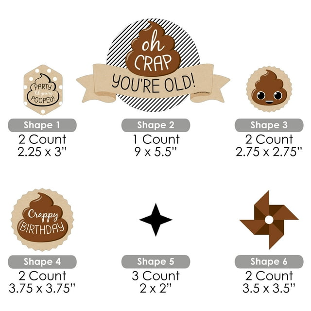 Okay, this poop-themed party decoration set is absolutely hilarious for anyone celebrating a milestone birthday with a sense of humor! The \Oh Crap, You're Old\ hanging swirls are perfect for that friend or family member who can laugh about getting older. You get 40 pieces in total with four different shapes and sizes - some measuring 5x5 inches with 11-inch lengths, others at 7.75x5.5 inches with 9-inch lengths, plus smaller variations to create visual interest. Each swirl features that cheeky \Oh Crap, You're Old\ message printed on both sides of heavy-duty cardstock, so they look great from any angle. The accordion-style spirals give them fun movement and dimension when hung, and the package includes clear hooks for easy installation. What's really convenient is the pre-cut holes that make assembly super simple - just insert the hook and gently stretch the swirl to create that fun spiral effect. You can hang them at different heights throughout your party space - over the gift table, above the dessert buffet, or scattered around the room for consistent theming. The quality is impressive too - professionally printed in the USA with vibrant colors that pop against any background. Whether you're throwing a 30th, 40th, 50th birthday or any milestone worth poking fun at, these decorations add that perfect touch of humor that gets everyone laughing. Your guest of honor might pretend to be offended, but they'll secretly love the funny acknowledgment of their big birthday!